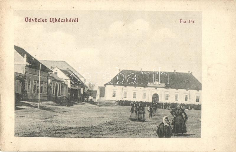 Leírás: Újkécske, Tiszakécske; Piac tér, Községháza, piac. Sárközi Lipót kiadása (EK)