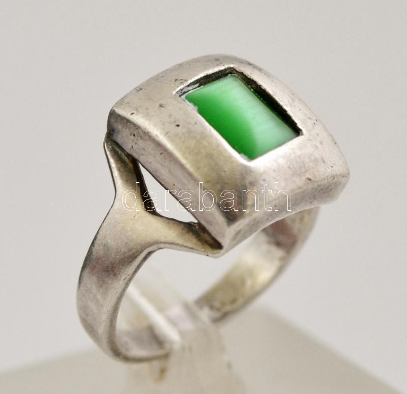 Leírás: Ezüst (Ag) gyűrű, zöld kővel, jelzett, méret: 53, bruttó: 5 gr.