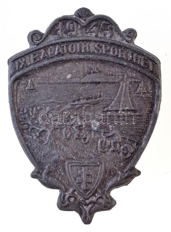 1943. "IX. Nemzetközi Balatoni Sporthét" a Levente szervezet Zn lemez gomblyukjelvénye. Szign.: MASEFSZKY (22x31mm) T:2