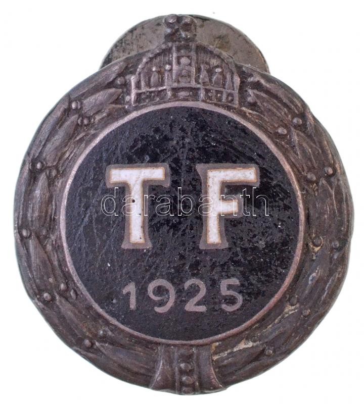 Leírás: ~1925. "TF 1925 (Testnevelési Főiskola)" zománcozott fém gomblyukjelvény, hátoldalán "BERÁN N" gyártói jelzéssel (19mm) T:2