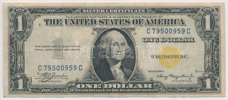 Amerikai Egyesült Államok 1934-1945. (1935A) 1$ "Silver Certificate - kisméretű" sárga pecsét, "William Alexander Julian - Henry Morgenthau Jr." T:III