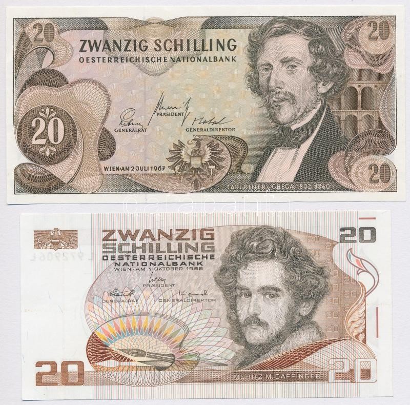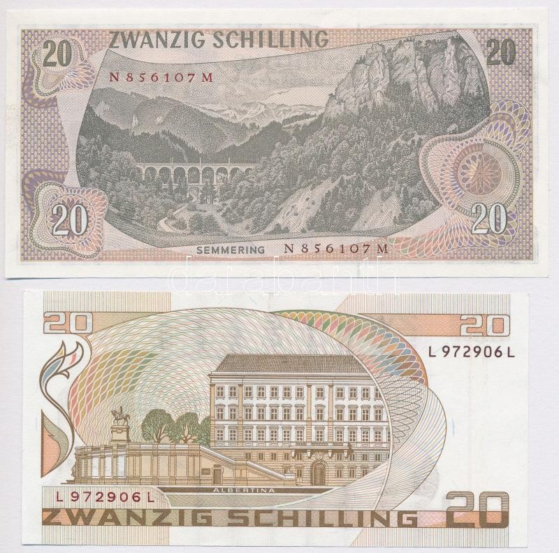 Austria 1967. ... https://www.darabanth.com/hu/323-Gyorsarveres/323.0/Numizmatika/Kulfoldi-bankjegyek~2000011/Ausztria-1967-20Sch-plus-1985-20Sch-TII-II-szep-papir-Austria-1967-20-Schilling-plus-1985-20-Schi~II1792649