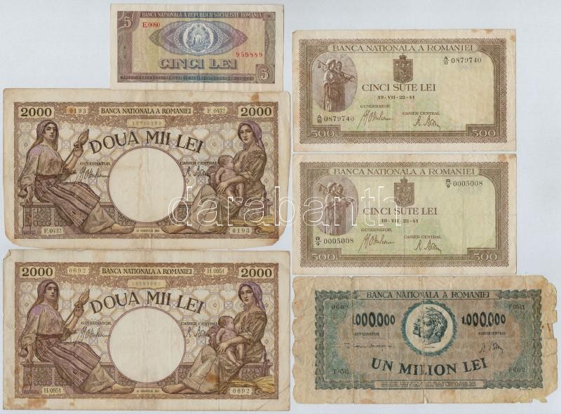 Romania 19... https://www.darabanth.com/hu/323-Gyorsarveres/323.0/Numizmatika/Kulfoldi-bankjegyek~2000011/Romania-1941-1966-6db-os-vegyes-bankjegy-tetel-TIII-III--Romania-1941-1966-6pcs-of-various-ban~II1795806