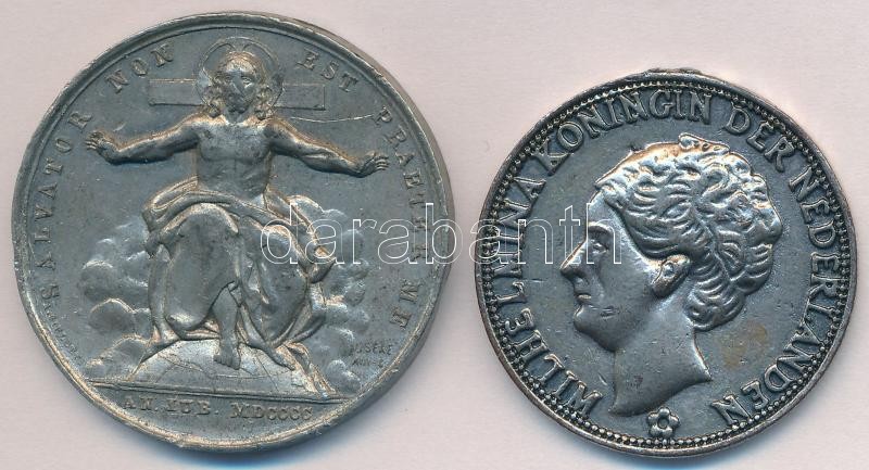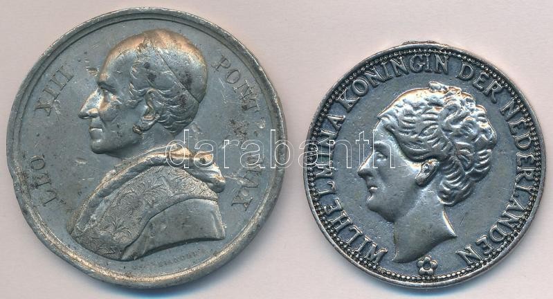 Pápai Állam 1900. "XIII. Leó" fém emlékérem. Szign.: Francesco Bianchi (43mm) + Hollandia DN "Vilma" fém emlékérem (38mm) T:2-,3 ph.,fülnyom