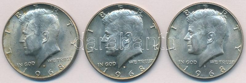 Leírás: Amerikai Egyesült Államok 1968D 1/2$ Ag "Kennedy" (3x) T:2