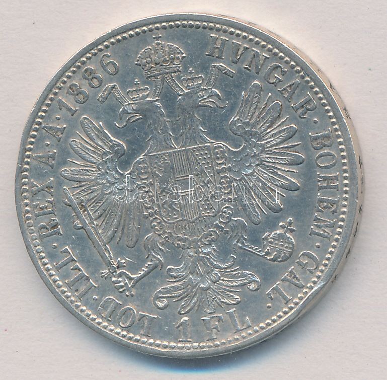 Austria 1886. 1 F... https://www.darabanth.com/hu/323-Gyorsarveres/323.0/Numizmatika/Kulfoldi-fem-es-ezustpenzek~2000012/Ausztria-1886-1Fl-Ag-Ferenc-Jozsef-T2-Austria-1886-1-Florin-Ag-Franz-Joseph-CXF--Krause-K~II1793141