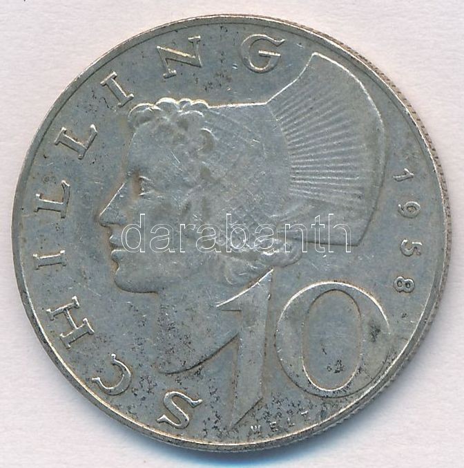 Austria 1958. 10 Schilling Ag C:XF https://www.darabanth.com/hu/323-Gyorsarveres/323.0/Numizmatika/Kulfoldi-fem-es-ezustpenzek~2000012/Ausztria-1958-10Sch-AgT2-Austria-1958-10-Schilling-Ag-CXF~II1795104