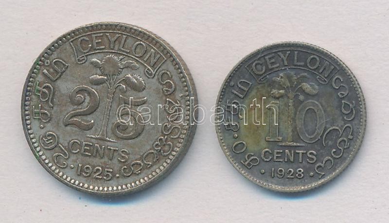 Leírás: Ceylon 1925. 25c Ag + 1928. 10c Ag "V. György" T:2,2- patina