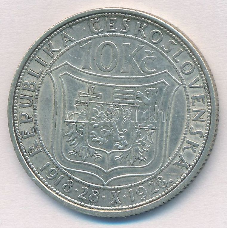 Czechoslovakia 192... https://www.darabanth.com/hu/323-Gyorsarveres/323.0/Numizmatika/Kulfoldi-fem-es-ezustpenzek~2000012/Csehszlovakia-1928-10K-Ag-Masaryk-T2-Czechoslovakia-1928-10-Korun-Ag-Masaryk-CXF-Krause-K~II1796610