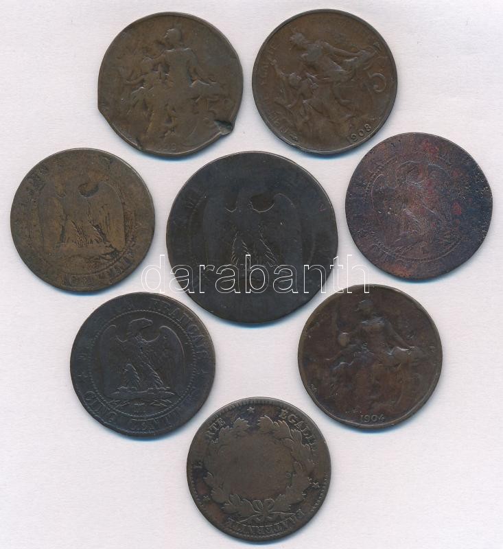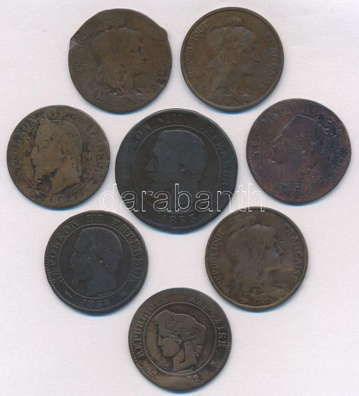 Leírás: Franciaország 1853-1908. 8db-os vegyes Cu érme tétel T:3-4