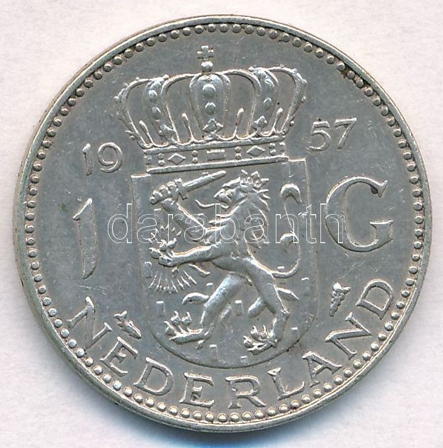 Netherlands 1957. 1... https://www.darabanth.com/hu/323-Gyorsarveres/323.0/Numizmatika/Kulfoldi-fem-es-ezustpenzek~2000012/Hollandia-1957-1G-Ag-I-Julianna-T2-Netherlands-1957-1-Gulden-Ag-Juliana-CXF~II1775747