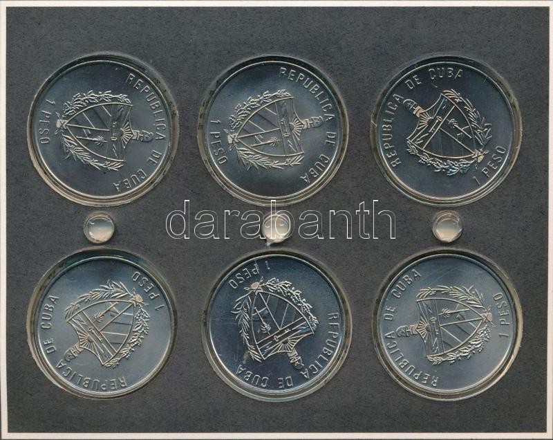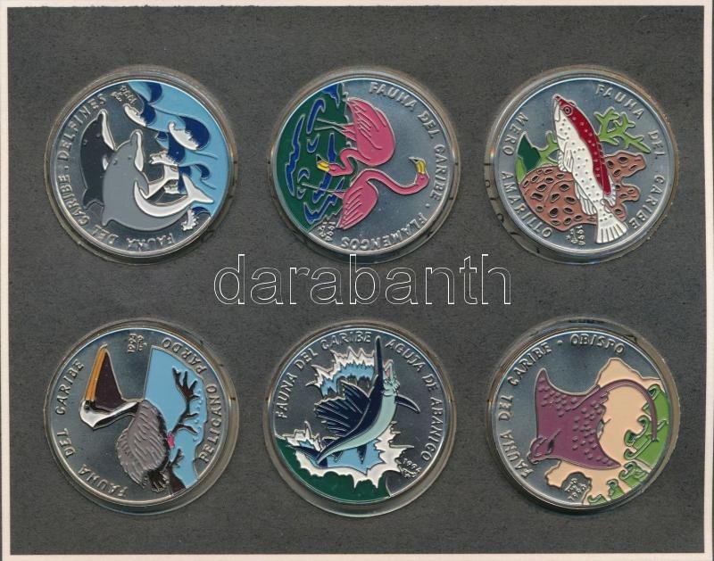 Kuba 1994. 1P Cu-Ni (6xklf) "Karibi élővilág" sorozat hátoldalon multicolor festett érméi karton dísztokban, benne: "Palackorrú Delfinek", "Foltos Sasrája", "Yellow Bass", "Kardhal", "Pelikán", "Flamingók" T:1 Cuba 1994. 1 Peso Cu-Ni (6xdiff) "Caribbean Fauna" series, multicolor painted on reverse in cardboard case, with: "Bottle-nosed Dolphins", "Spotted Eagle Ray", "Yellow Bass", "Swordfish", "Pelican", "Flamingos" C:UNC Krause KM#439,KM#460, KM#466.1, KM#467.1, KM#497, KM#498.1