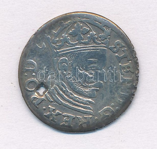 Poland / Riga 1583. 3 Grossus Ag "Stephen Bathory" (2,12g) C:VF,F hole