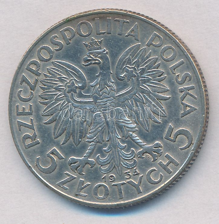 Poland 1934. 5 Zlotych Ag C:XF ... https://www.darabanth.com/hu/323-Gyorsarveres/323.0/Numizmatika/Kulfoldi-fem-es-ezustpenzek~2000012/Lengyelorszag-1934-5Zl-Ag-T2-patina-Poland-1934-5-Zlotych-Ag-CXF-patina-Krause-Y2321~II1790484