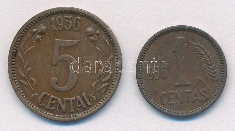 Lithuania 1936. 1 Centas Br + 5 Centai Br C:XF