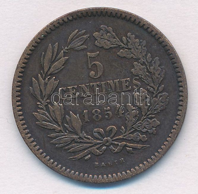 Kraus... https://www.darabanth.com/hu/323-Gyorsarveres/323.0/Numizmatika/Kulfoldi-fem-es-ezustpenzek~2000012/Luxemburg-1854-5c-Br-T2--Luxembourg-1854-5-Centimes-Br-CVF-Krause-KM23221~II1790961