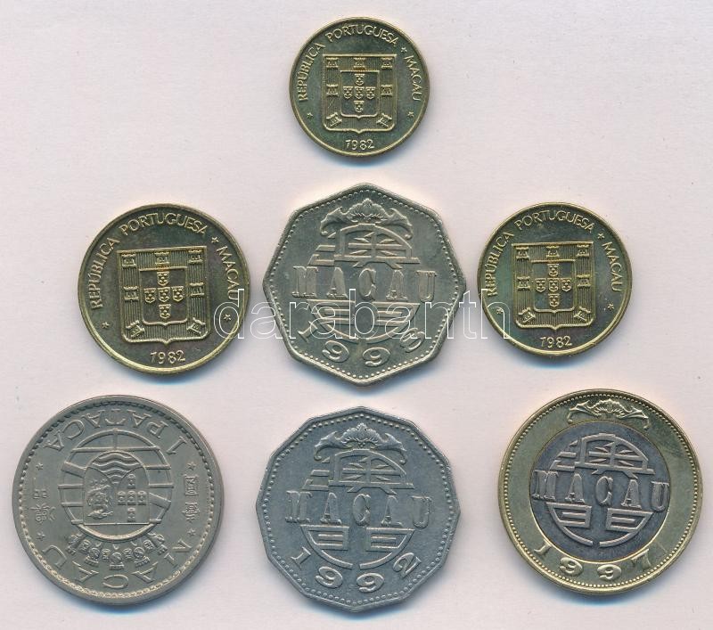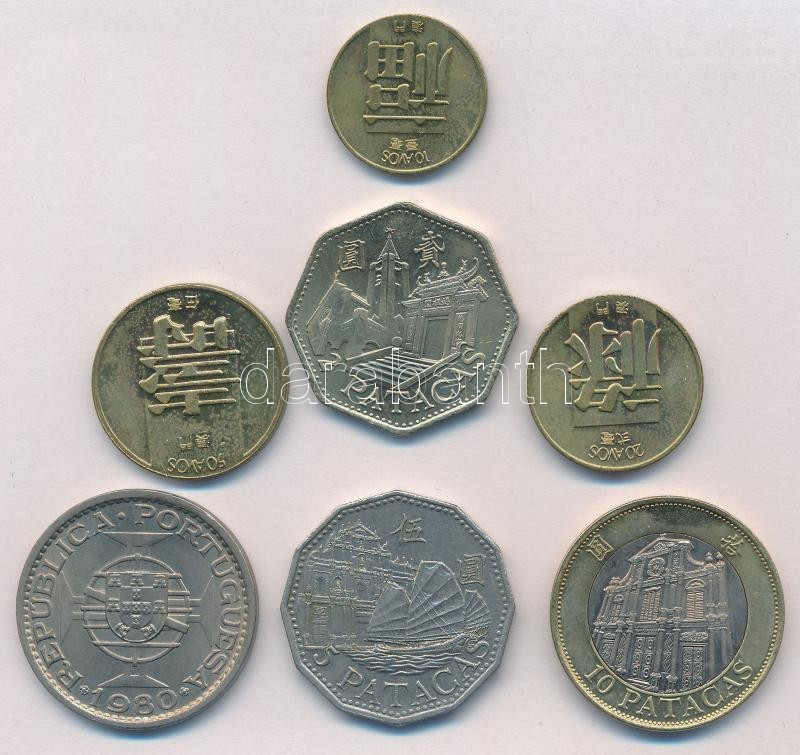 Macao 1980-1998. 10 Avos - 10 P... https://www.darabanth.com/hu/323-Gyorsarveres/323.0/Numizmatika/Kulfoldi-fem-es-ezustpenzek~2000012/Makao-1980-1998-10a-10P-7xklf-T1--Macao-1980-1998-10-Avos-10-Patacas-7xdiff-CAU~II1790987