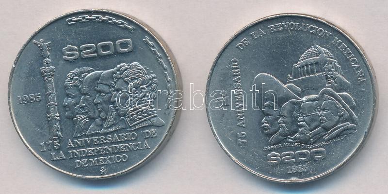 Leírás: Mexikó 1985. 200P Cu-Ni "A függetlenség 175. évfordulója" + 1985. 200P Cu-Ni "Az 1910-es forradalom 75. évfordulója" T:1- egyiken ph.