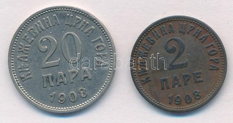 Montenegro 1908. 2 Pare Br + 20 Para Ni C:XF