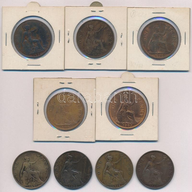 Great Britain 1897-1967. 1... https://www.darabanth.com/hu/323-Gyorsarveres/323.0/Numizmatika/Kulfoldi-fem-es-ezustpenzek~2000012/Nagy-Britannia-1897-1967-1p-Br-9x-T1-3-Great-Britain-1897-1967-1-Penny-Br-9x-CUNC-F~II1794361