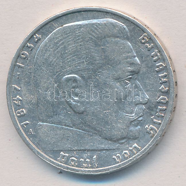 Ger... https://www.darabanth.com/hu/323-Gyorsarveres/323.0/Numizmatika/Kulfoldi-fem-es-ezustpenzek~2000012/Nemet-Harmadik-Birodalom-1939A-2M-Ag-Hindenburg-T2--German-Third-Reich-1939A-2-Mark-Ag-Hinden~II1793144