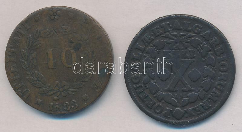 Leírás: Portugália 1752. 10r Cu + 1833. 40r Br T:2-