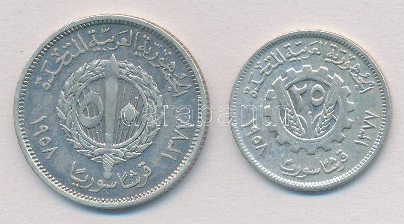 Leírás: Szíria 1958. 25p Ag + 50p Ag T:2