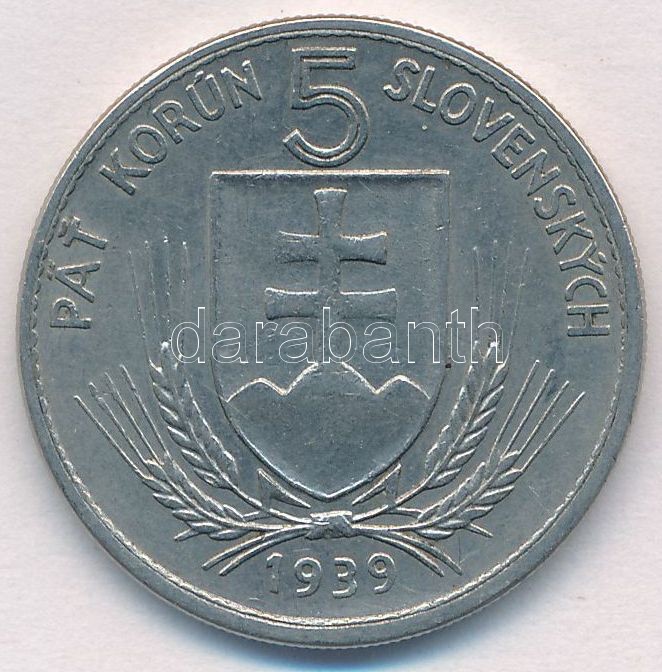 Krause KM... https://www.darabanth.com/hu/323-Gyorsarveres/323.0/Numizmatika/Kulfoldi-fem-es-ezustpenzek~2000012/Szlovakia-1939-5K-Ni-T2--Slovakia-1939-5-Korun-Ni-CXF--Krause-KM232~II1789504