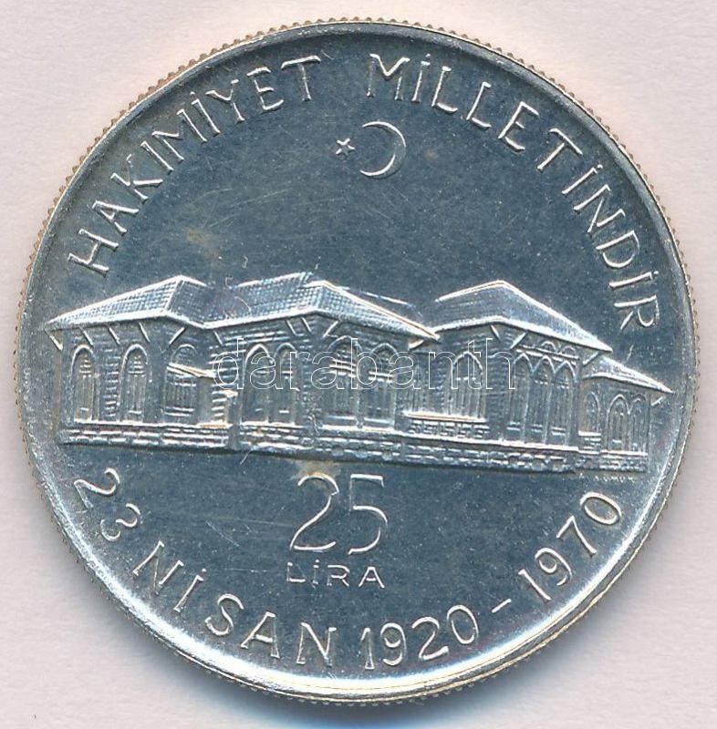 Turkey 1970. 25 Lira Ag "50th Anniversary of National Assembly in Ankara" C:AU