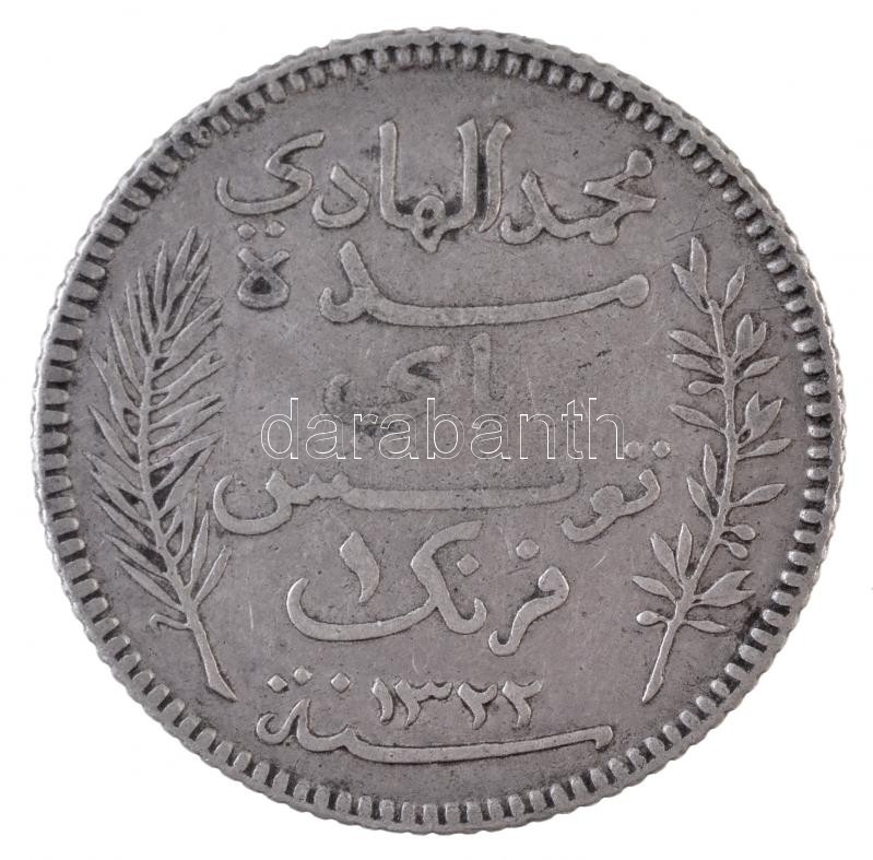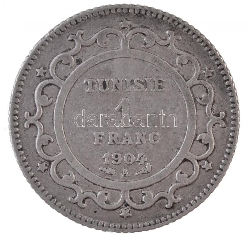 Tunisia / Fr... https://www.darabanth.com/hu/323-Gyorsarveres/323.0/Numizmatika/Kulfoldi-fem-es-ezustpenzek~2000012/Tunezia-Francia-Protektoratus-1904A-1322-1Fr-Ag-T2--Tunisia-French-Protectorate-1904A-132~II1790487