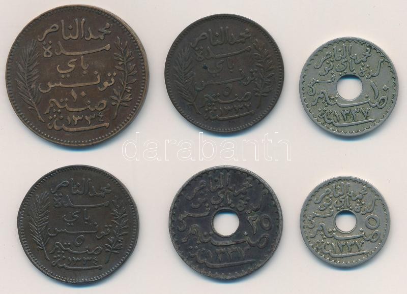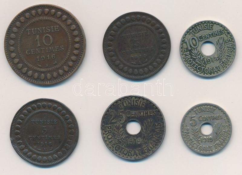 Tunisia... https://www.darabanth.com/hu/323-Gyorsarveres/323.0/Numizmatika/Kulfoldi-fem-es-ezustpenzek~2000012/Tunezia-Francia-Protektoratus-1914-1919-5c-25c-6xklf-T2-Tunisia-French-Protectorate-1914-~II1790501