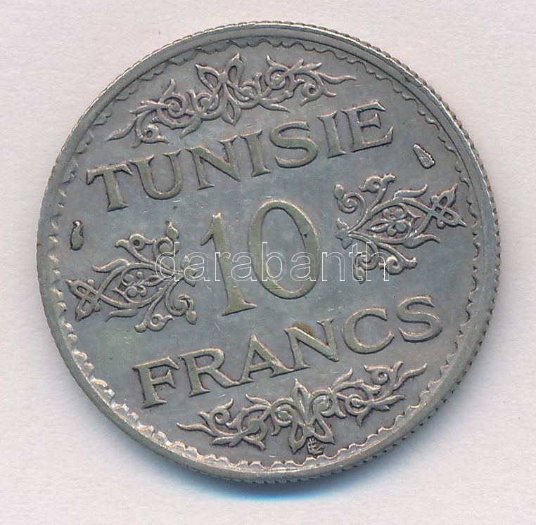 Tunisia / F... https://www.darabanth.com/hu/323-Gyorsarveres/323.0/Numizmatika/Kulfoldi-fem-es-ezustpenzek~2000012/Tunezia-Francia-Protektoratus-1934-1353-10Fr-Ag-T2--Tunisia-French-Protectorate-1934-13~II1790469