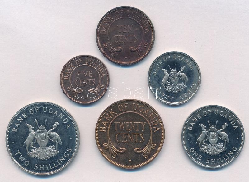Uganda 1966... https://www.darabanth.com/hu/323-Gyorsarveres/323.0/Numizmatika/Kulfoldi-fem-es-ezustpenzek~2000012/Uganda-1966-5c-2Sh-6xklf-forgalmi-sor-TPP-ujjlenyomat-Uganda-1966-5-Cents-2-Shillings-6xdif~II1790541