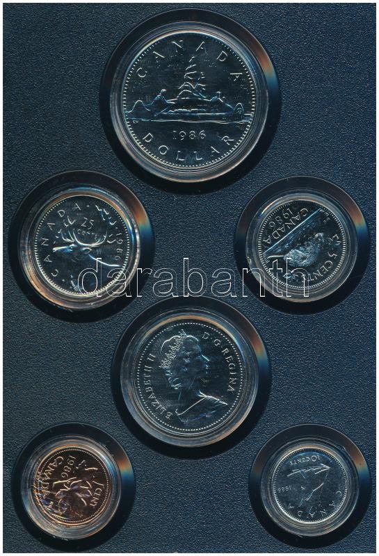 Canada 1986. ... https://www.darabanth.com/hu/323-Gyorsarveres/323.0/Numizmatika/Kulfoldi-forgalmi-sorok~2000013/Kanada-1986-1c-1USD-6xklf-forgalmi-sor-disztokban-TBU-Canada-1986-1-Cent-1-Dollar-6xdiff-co~II1779185