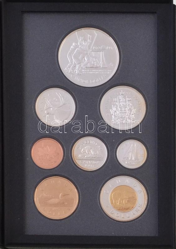 Kanada 1997. 1c-2$ (8xklf) forgalmi sor eredeti tokban, tanúsítvánnyal, benne 5c Ag, 10c Ag, 25c Ag, 50c Ag, 2$ Ag és 1$ "Szovjet-Kanadai Hokimeccsek 1972" Ag T:PP Canada 1997. 1 Cent - 2 Dollars (8xdiff) coin set in original case with certificate, with 5 Cents Ag, 10 Cents Ag, 25 Cents Ag, 50 Cents Ag, 2 Dollars Ag and 1 Dollar "1972 Canada-USSR Hockey Series" Ag C:PP