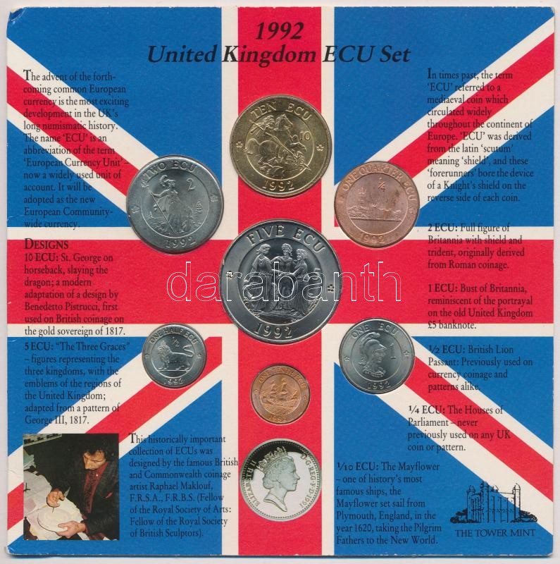 Great Britain 1992. 1/10 Ecu - 10 Ecu (7xdiff) coin set in cardboard case C:UNC,AU