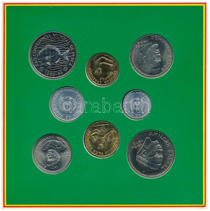 Leírás: Zöld-foki Köztársaság 1980. 20c-50E (7xklf) forgalmi sor sérült karton díszcsomagolásban + 1984. 50E Cu-Ni "FAO" T:1