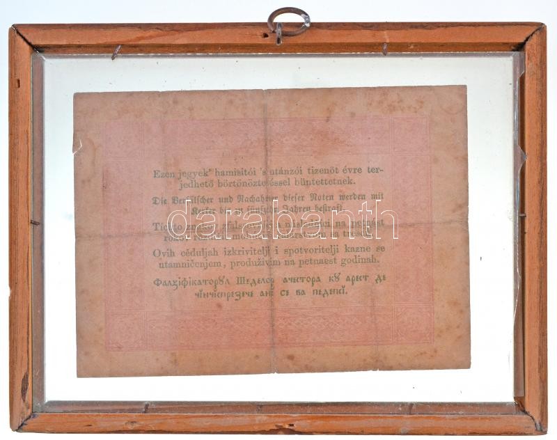 Leírás: 1848. 5Ft "Kossuth bankó" vörösesbarna, üvegezett keretben T:III- szakadás