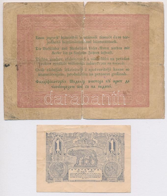 Leírás: Vegyes: 1848. 5Ft "Kossuth bankó" vörösesbarna + Románia 1920. 1L T:IV,III