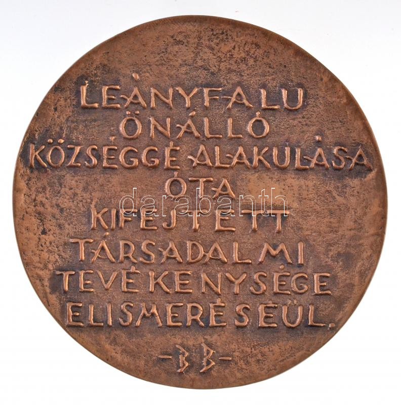 Búza Barna (1910-2010) 1974. "Leányfalu 1949-1974 / Leányfalu önálló községgé alakulása óta kifejtett társadalmi tevékenysége elismeréséül" kétoldalas Br plakett (83mm) T:2