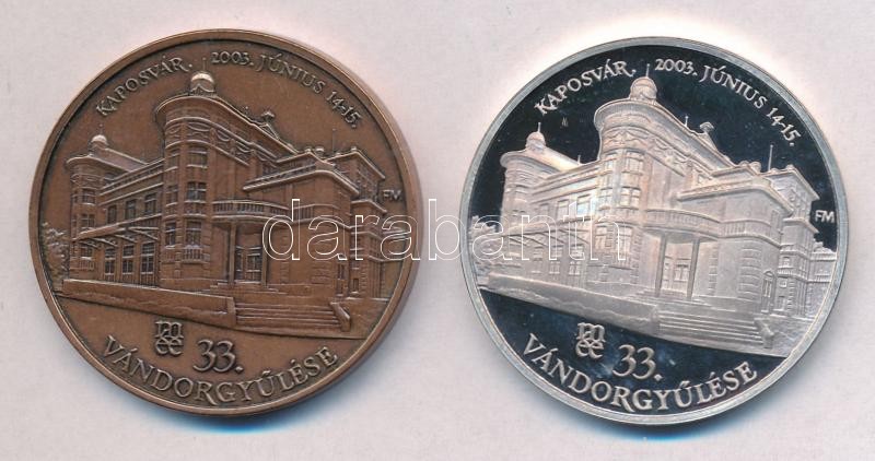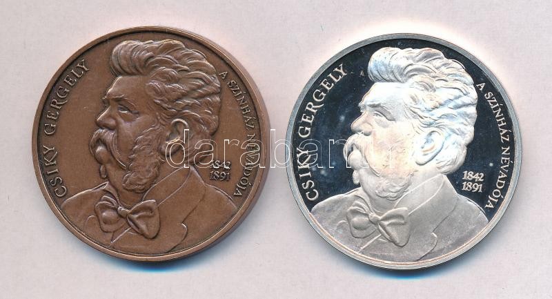 Fritz Mihály (1947-) 2003. "MÉE Kaposvár - 33. Vándorgyűlés / Csiky Gergely a színház névadója" Ag és Br emlékérem pár (34,08g/0.925/42,5mm) T:1(PP)