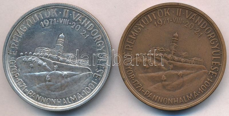 Leírás: Kovács Dezső (1921-) 1971. "MÉE II. Vándorgyűlése - Győr - Pannonhalma" Ag és Br emlékérem pár (26,58g/0.800/42,5mm) T:1-