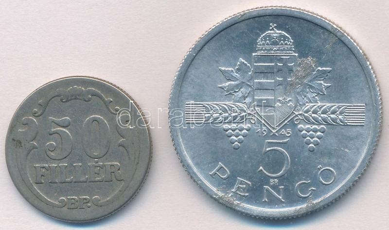1926. 50f Ni + 1945. 5P Al T:2-,1- anyagfelesleg https://www.darabanth.com/hu/323-Gyorsarveres/323.0/Numizmatika/Magyar-es-magyar-verdejelu-fem-es-ezustpenzek~2000007/1926-50f-Ni-plus-1945-5P-Al-T2-1-anyagfelesleg~II1795098