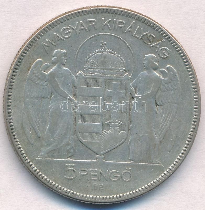 Leírás: 1930. 5P Ag "Horthy jobbra" T:2-