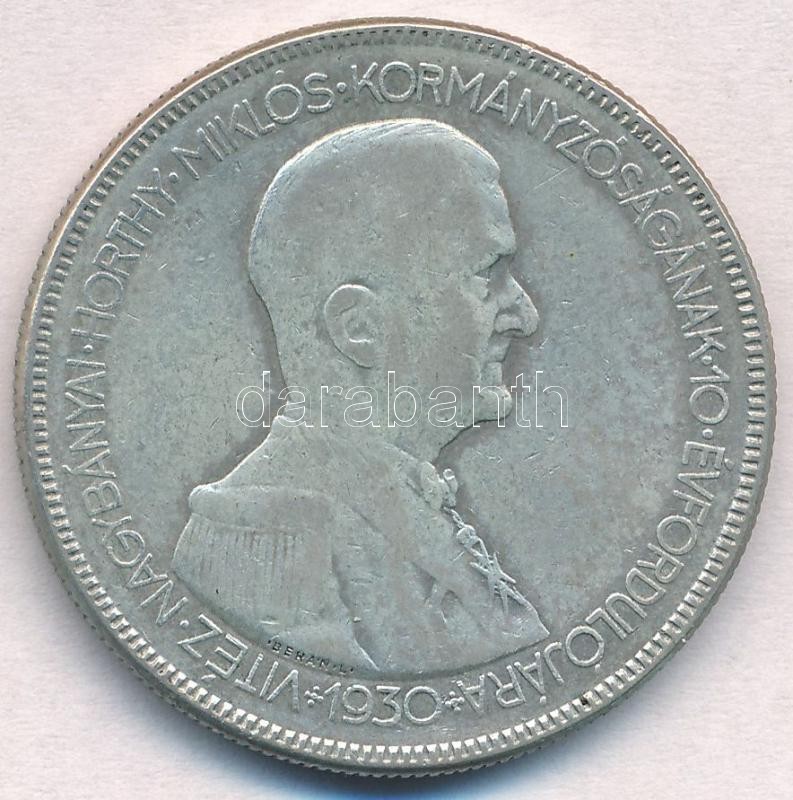 Leírás: 1930. 5P Ag "Horthy jobbra" T:2-