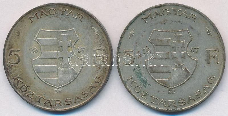 1947. 5Ft Ag "Kossuth" (2x) T:2,2- patina