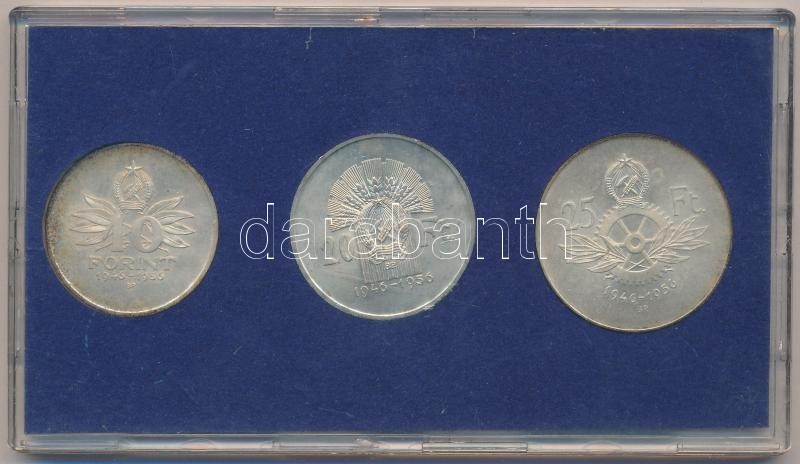 Leírás: 1956. 10Ft + 20Ft + 25Ft Ag "Tízéves a Forint" sor kék MNB tokban T:1- kis patina Adamo EM4, EM5, EM6