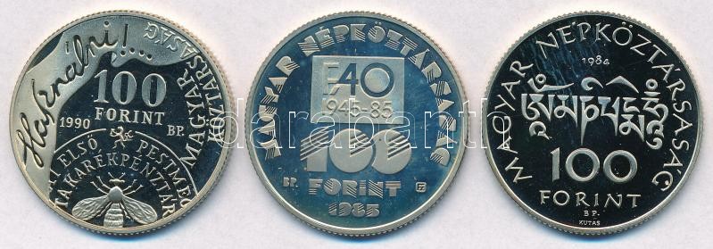 Leírás: 1984. 100Ft alpakka "Kőrösi Csoma Sándor" + 1985. 100Ft alpakka "FAO - Fa, búza, hal" + 1990. 100Ft alpakka "Fáy András" T:PP ujjlenyomat