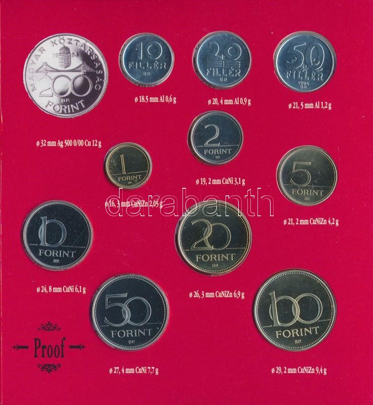 1994. 10f-200Ft (11xklf) forgalmi sor dísztokban, közte 1994. 200Ft Ag... https://www.darabanth.com/hu/323-Gyorsarveres/323.0/Numizmatika/Magyar-es-magyar-verdejelu-fem-es-ezustpenzek~2000007/1994-10f-200Ft-11xklf-forgalmi-sor-disztokban-kozte-1994-200Ft-Ag-Deak-TPP-Adamo-FO271~II1670605