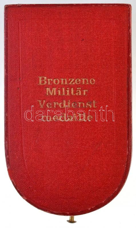 1890. "Bronz Katonai Érdemérem" aranyozott Br kitüntetés mellszalaggal, eredeti, sérült tokban, tok belsejében "Zimbler Wien VII" gyártói jelzéssel T:1-